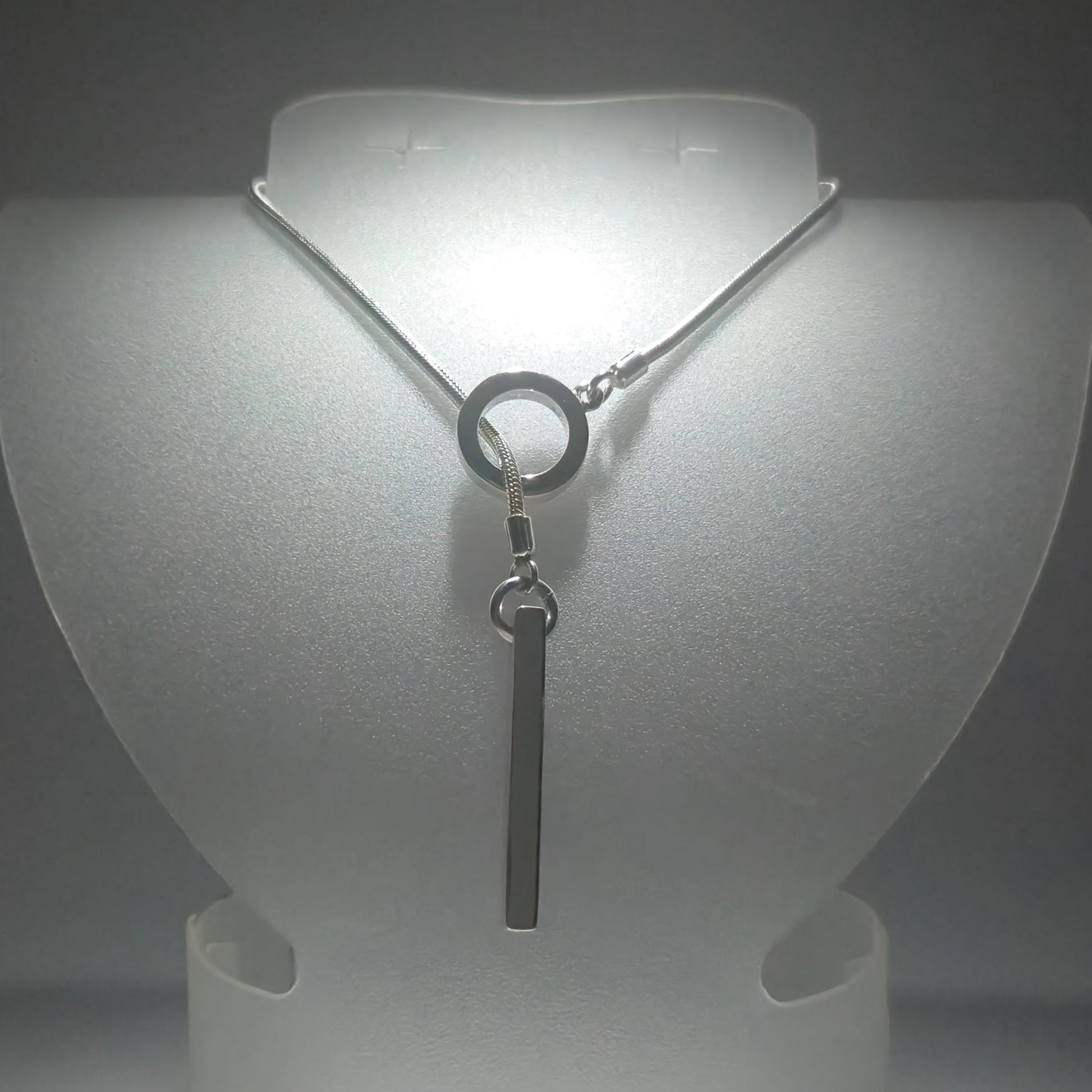 Experience luxury and elegance with our pure silver lariat necklace. Made with 0.925 silver, this necklace features an opened circle and pendulum design. Sourced from Mexico, this 55.5 cm necklace weighs 17.15 grams and will elevate any outfit. Treat yourself or a loved one to a piece of timeless beauty and quality.