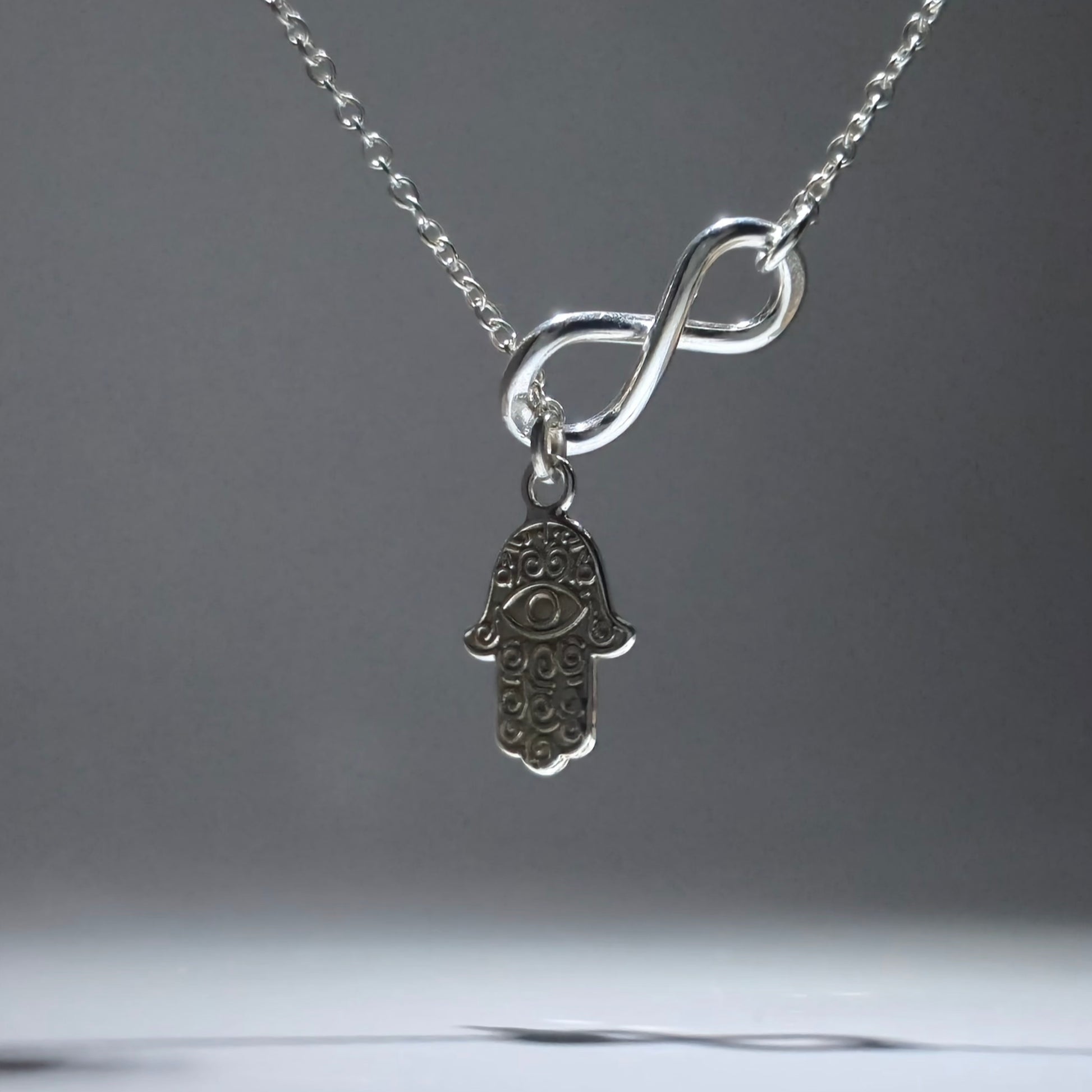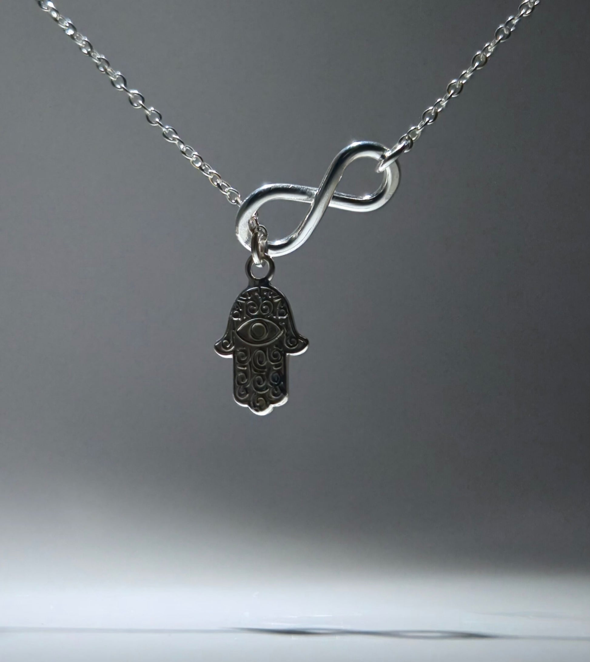 Silver Feather Pendant with infinity figure
